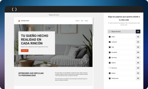 Según tus necesidades, el Asistente IA de WordPress te sugiere qué secciones o páginas estaría bien que presentara tu web y tú seleccionas las que quieres incluir. De esta manera, tendrás toda la estructura de tu web creada en un santiamén y con la ayuda de la IA te permitirá estar online con tu página web en muy poco tiempo.