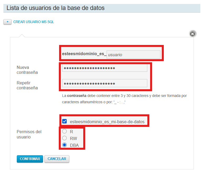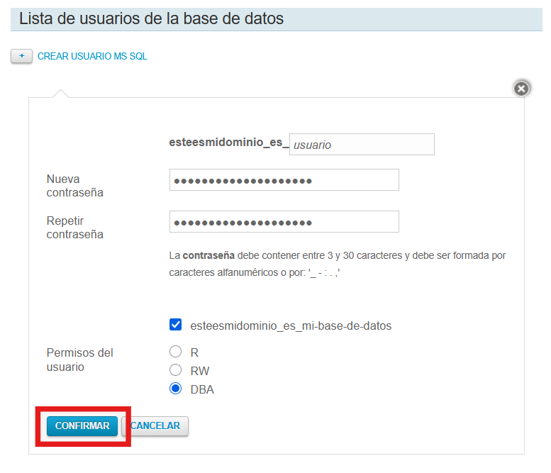 ¡Y ya tendrás creada la base de datos y su usuario!