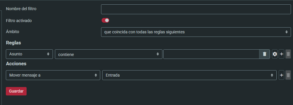 Ámbito: Aquí indicas a qué mensajes debe aplicarse este filtro.