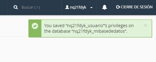 Indica que quieres asignar todos los privilegios al usuario para esta base de datos y haz clic en ‘Hacer cambios’.
