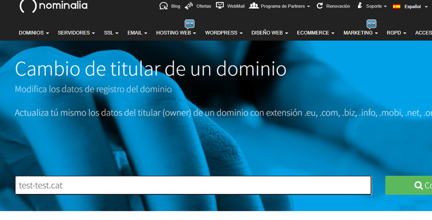 El titular de un dominio, es el propietario del mismo. Si deseas cambiar de titular de tu dominio .com, .net, .cat, .org, .es o .eu, lo puedes solicitar desde tu panel de control, en este manual te indicamos los pasos para ello.