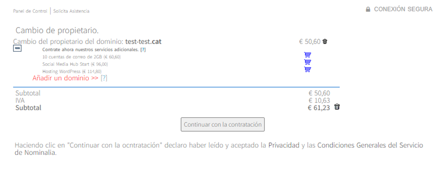 Ten en cuenta que el cambio de titular no se gestiona igual para todas las extensiones, y el coste puede variar en función de la extensión.