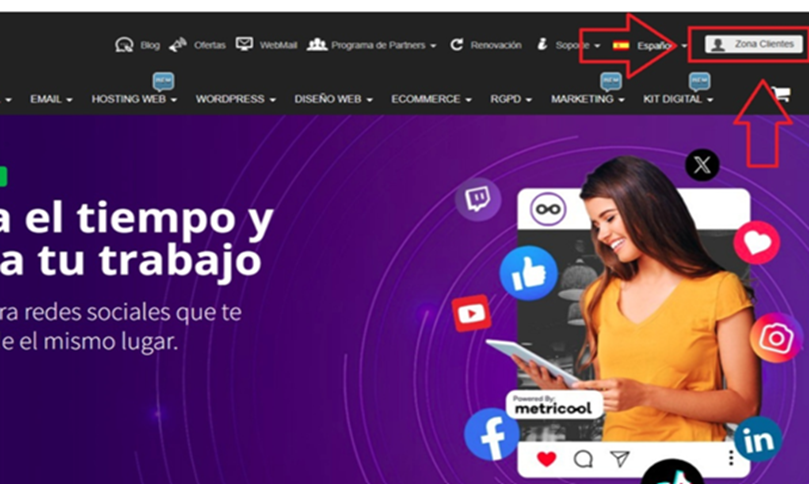 En primer lugar, accede a tu Zona Cliente de Nominalia con tu usuario y contraseña. Puedes hacerlo a través de la web de nominalia.com haciendo click en el botón que aparece en la parte superior derecha o bien a través del siguiente enlace: