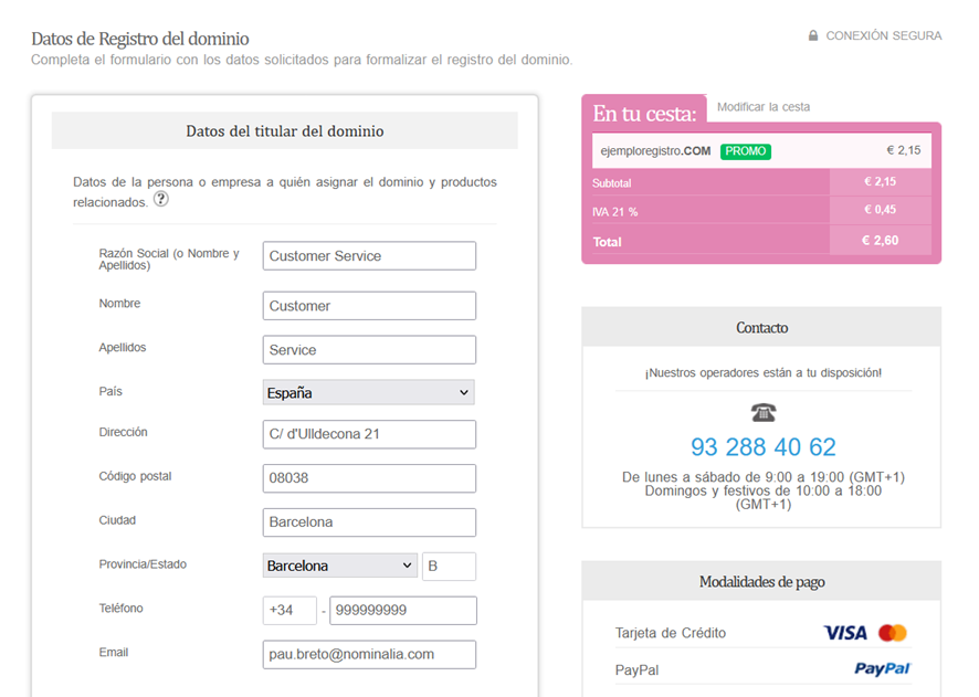 ¡Y una vez hecho el pago, tu dominio se habrá registrado!