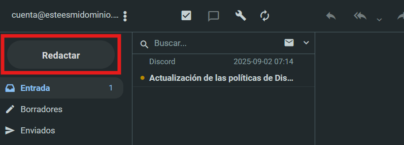 Luego, para crear un nuevo mensaje, haz clic en el botón "Redactar":