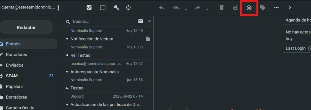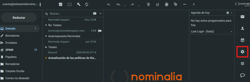 Antes de nada, para acceder al nuevo Webmail, dirígete a https://webmail.nominalia.com y accede con tu usuario y contraseña: