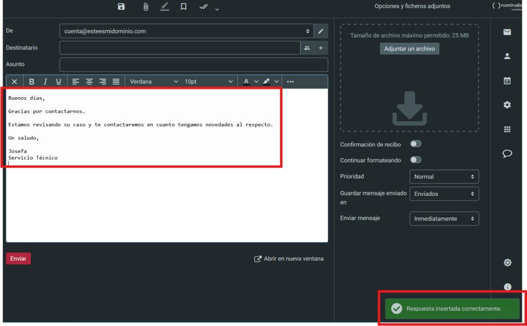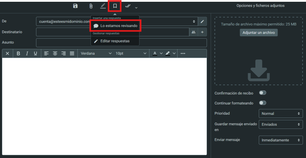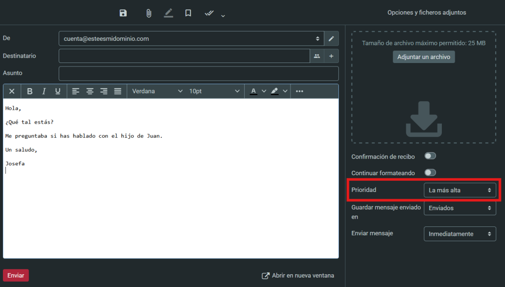 Al escribir un nuevo mensaje dentro de tu Nuevo Webmail, verás que te aparecen a la derecha varias opciones extra que te permitirán tener un mayor control sobre el mismo ¡En esta guía te las explicaremos para que puedas sacarle el mayor partido a tu correo!