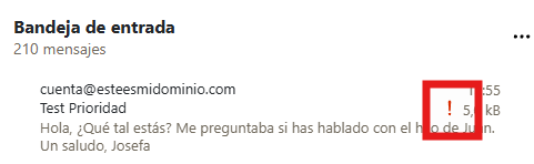 Y el destinatario verá un símbolo de prioridad como el siguiente: