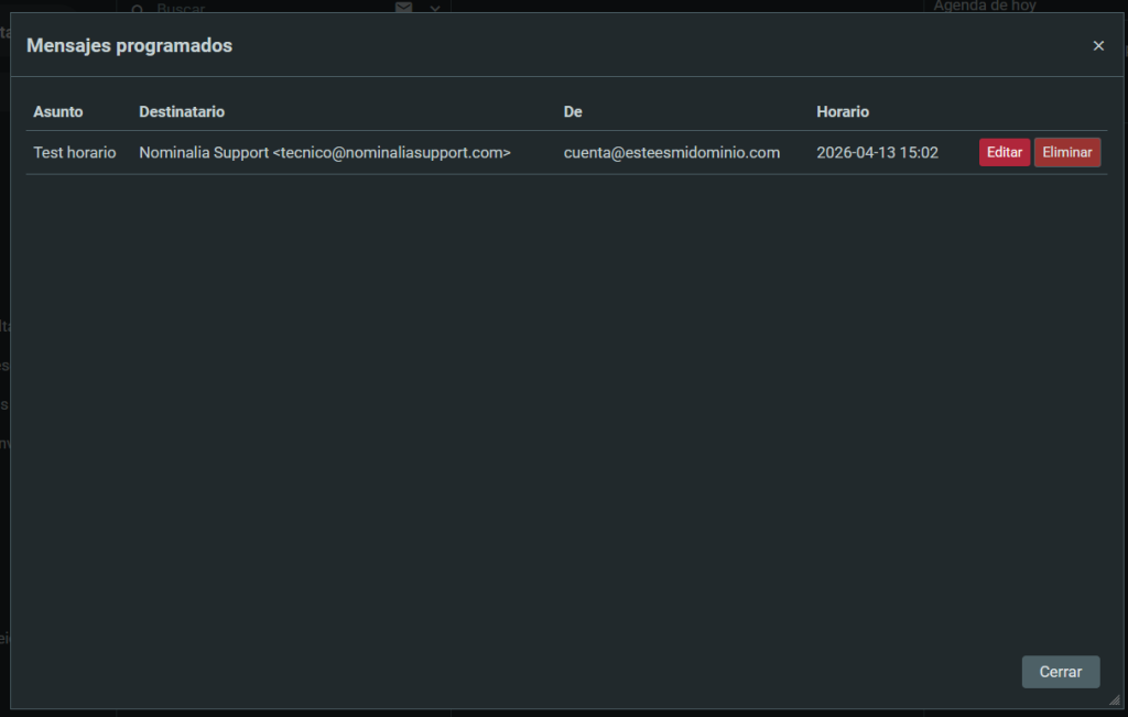 Y te aparecerá una lista con todos los mensajes que tienes programados, pudiendo editarlos: