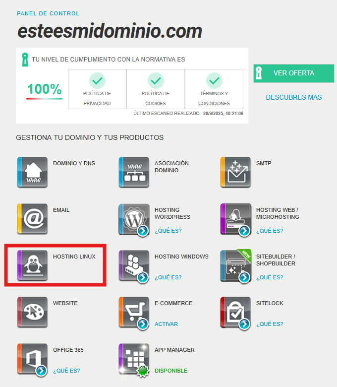 En la siguiente ventana, haz clic sobre el icono de "Hosting Linux":