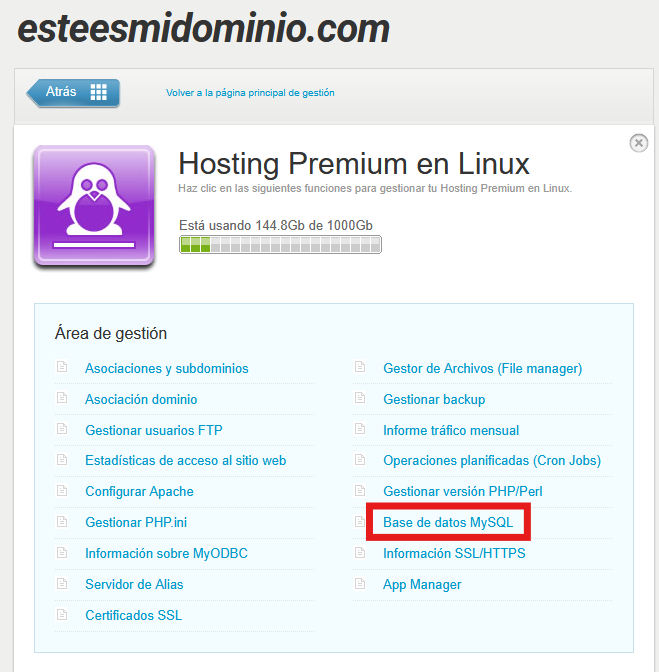 Luego, haz clic sobre "Base de datos MySQL":