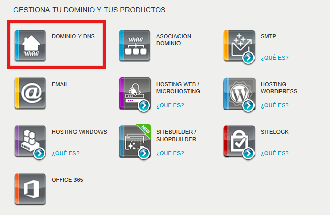 En la columna de la derecha, haz clic sobre tu dominio dentro del apartado de "Dominios y Productos":