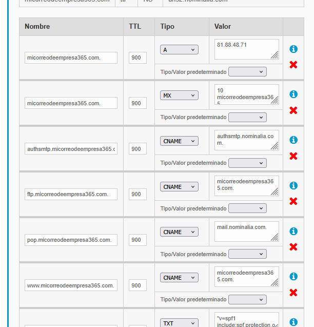 Y ahora verás tu Zona DNS que podrás modificar: