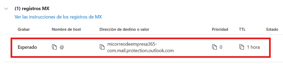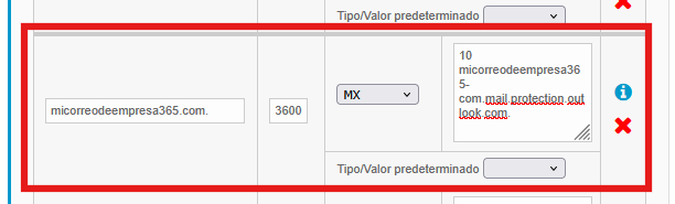 Añade el registro MX que te han indicado desde Office 365. En nuestro ejemplo era el siguiente: