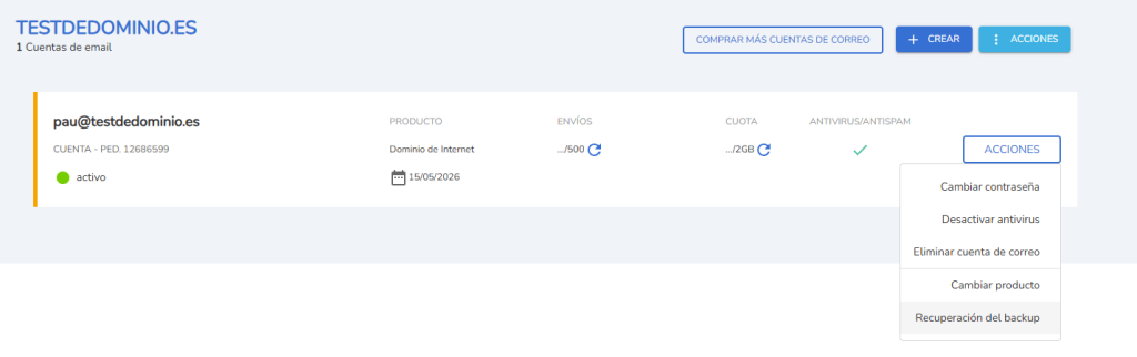 Esta página tiene el propósito de describir el servicio de recuperación desde copia de seguridad de un buzón de correo. El servicio de copia de seguridad se proporciona con copias diarias de hasta 5 días de antigüedad.
