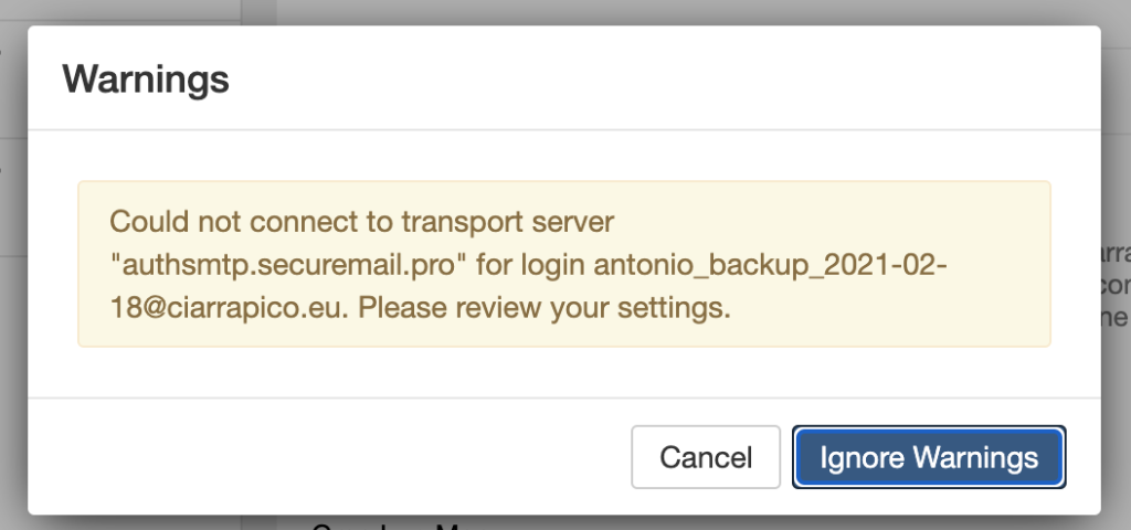 El último paso responderá con un error: puedes ignorarlo. Es un error de SMTP, pero la cuenta de copia de seguridad no puede usarse para enviar mensajes, así que no lo necesitarás.