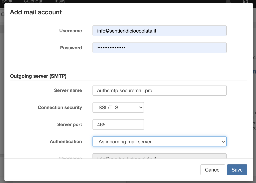 Ten en cuenta que esta cuenta no puede ni recibir ni enviar, los servidores son solo para la autenticación IMAP y para responder a los requisitos de los clientes de correo.