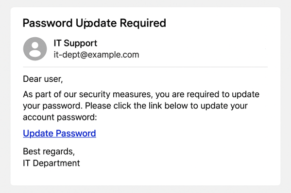 Ejemplo 1: el departamento IT de tu empresa pide que actualices tu contraseña mediante un enlace falso: