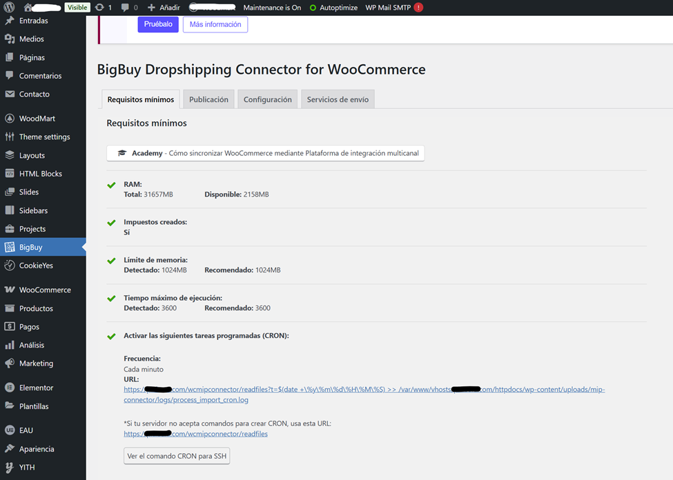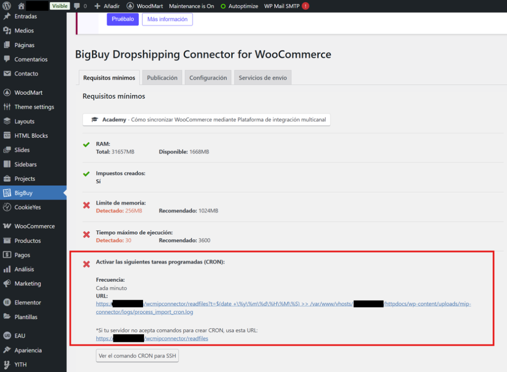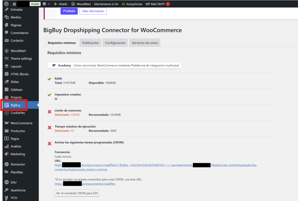 5. Servidores- Configurar el plugin de Bigbuy para WordPress Woocommerce y Plesk