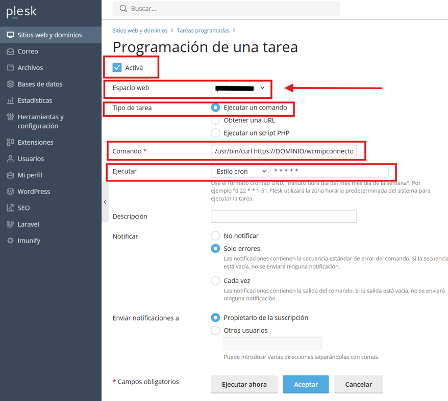 • Activar las siguientes tareas programadas (CRON): Te indicamos cómo más abajo en esta guía.