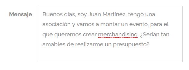 Este campo permite que el visitante escriba un texto de varios párrafos. Está recomendado para cuando los clientes deben explicar algo de varias líneas de texto.
