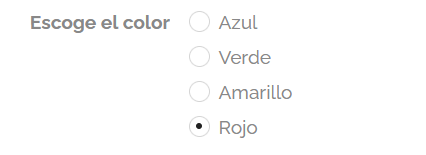 Este campo sirve para que el visitante tenga que escoger 1 sola opción entre varias que se le presentan. Si las opciones a elegir con muchas, para no ocupar tanto espacio, puedes usar en su lugar el campo "Lista Desplegable".