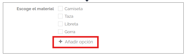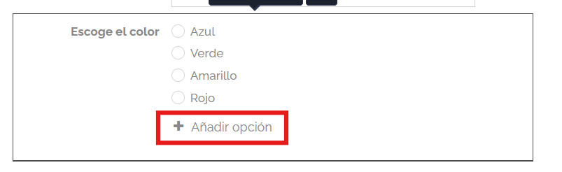 Para añadir opciones, haz clic encima del campo y luego haz clic en "Añadir opción":