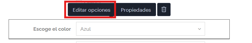 Para añadir opciones, haz clic encima del campo y luego haz clic en "Editar Opciones":