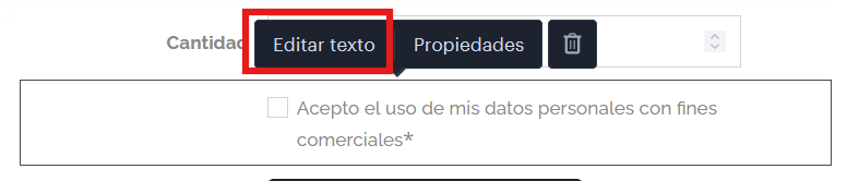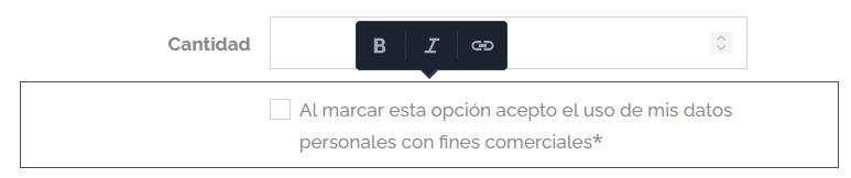 Con este campo, podrás añadir el enlace a la política de privacidad y pedir el consentimiento de uso de los datos enviados en el formulario.