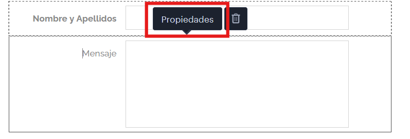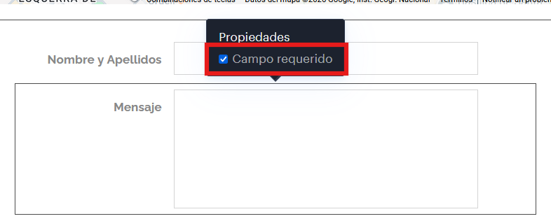 Para hacer que un campo sea obligatorio para rellenar para el visitante, haz clic sobre el propio campo y luego, haz clic en la opción "Propiedades":