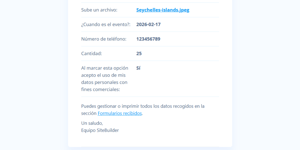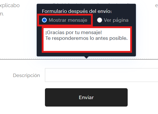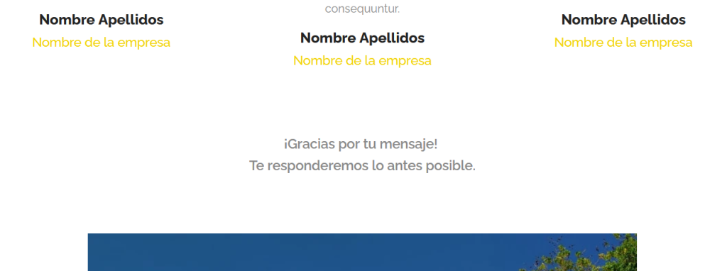 Y tras enviar el formulario, al visitante le aparecerá el mensaje que hayas escrito en el recuadro: