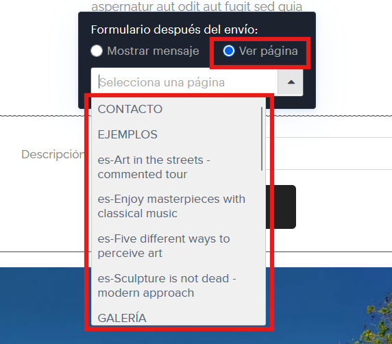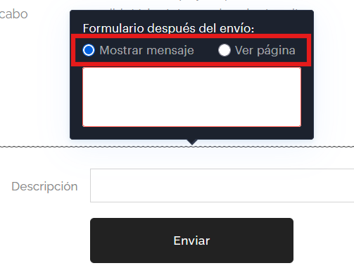 Tras enviar el formulario, al visitante será redirigido hacia la página que elijas de tu web: