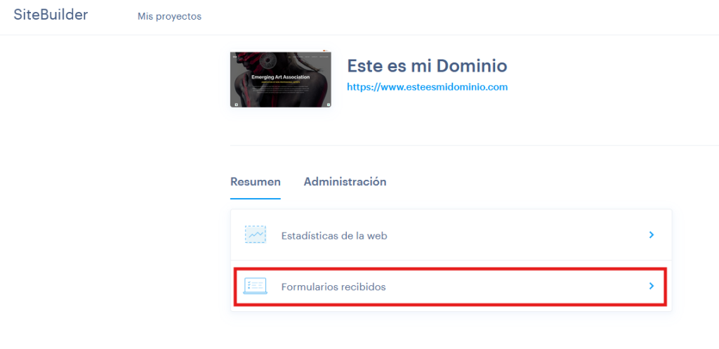 Aquí verás la opción "Formulario recibidos", haz clic sobre ella:
