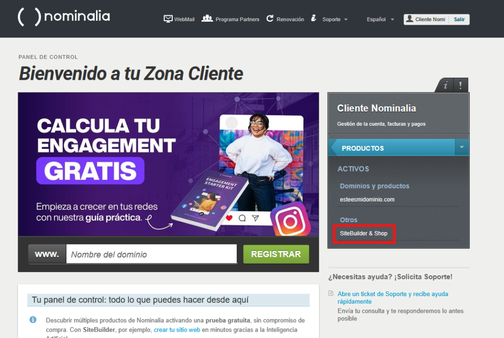 Haz clic sobre tu dominio: