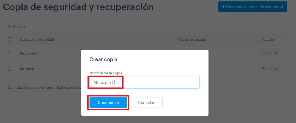 ¡Recuerda! Si tienes un plan que no incluye el servicio de copias, siempre puedes hacer un upgrade a una modalidad de editor superior para tener más características.