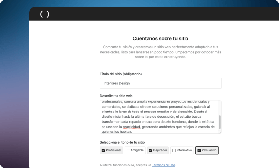 Comença escrivint tots els detalls que desitges incloure en el teu lloc web o activitat. L'Assistent IA de WordPress utilitzarà la informació proporcionada per crear el teu lloc web i generar contingut personalitzat per a cada pàgina. El teu lloc estarà llest en minuts amb tots els textos ja escrits per la IA.