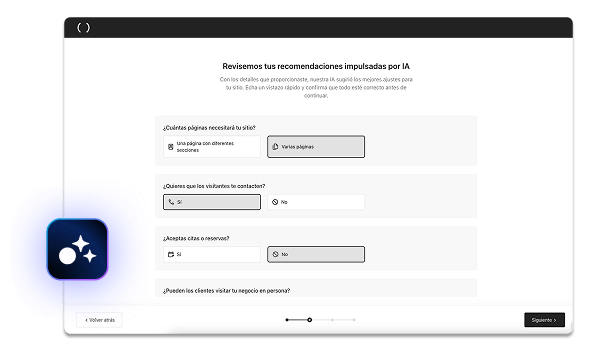 Comunica a l'Assistent IA de WordPress què t'agradaria aconseguir amb la teva pàgina web: vendre serveis o productes, promoure esdeveniments, promocionar un negoci físic, atreure trànsit a la teva web, aconseguir trucades telefòniques, etc. Selecciona les opcions que vulguis i l'Assistent IA afegirà aquestes funcionalitats a la teva web.