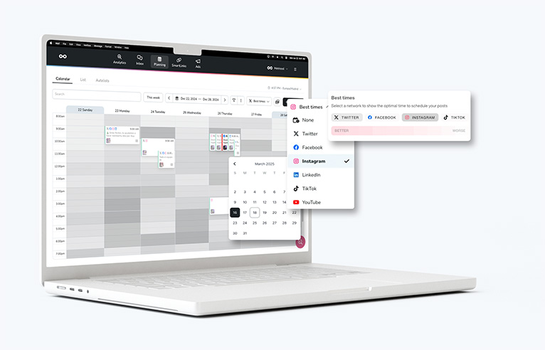Una herramienta de gestión de redes sociales ayuda a empresas, marketers y creadores de contenido a programar publicaciones, rastrear rendimiento, analizar competidores y gestionar comentarios en múltiples plataformas desde un único panel. Optimiza los flujos de trabajo y perfecciona las estrategias online.